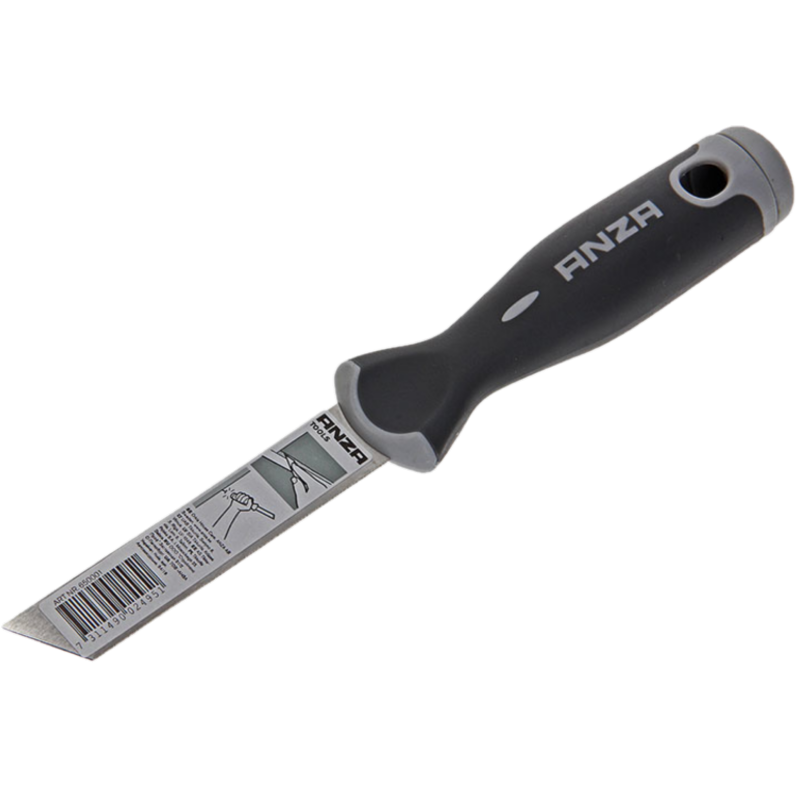 HET ANZA Stopverfmes is een soort plamuurmes dat zich specialiseerd in het gebruik van stopverf en vervangers. Stopverf wordt altijd gebruikt op behandeld hout. Het is een stevig mes wat gemaakt is van roestvrijstaal en het stopverfmes heeft een handvat met ergonomische softgrip.